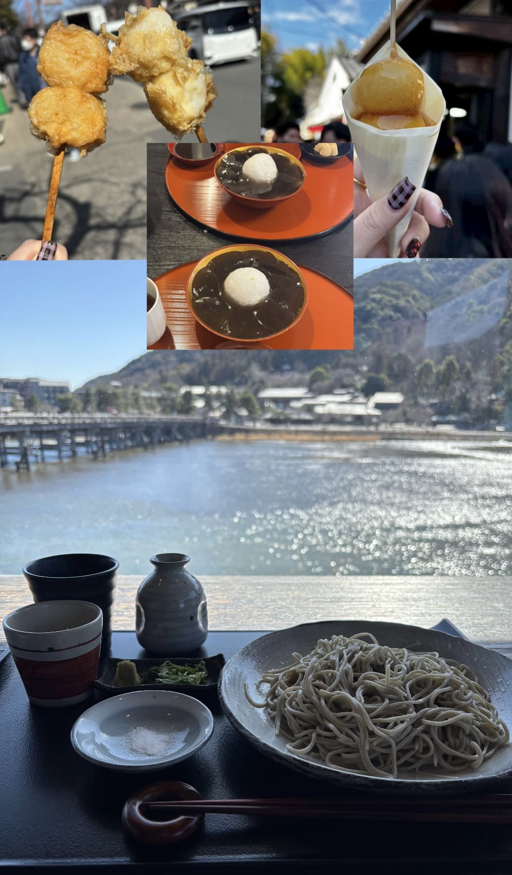 嵐山の景色の綺麗なところでお蕎麦を食べて